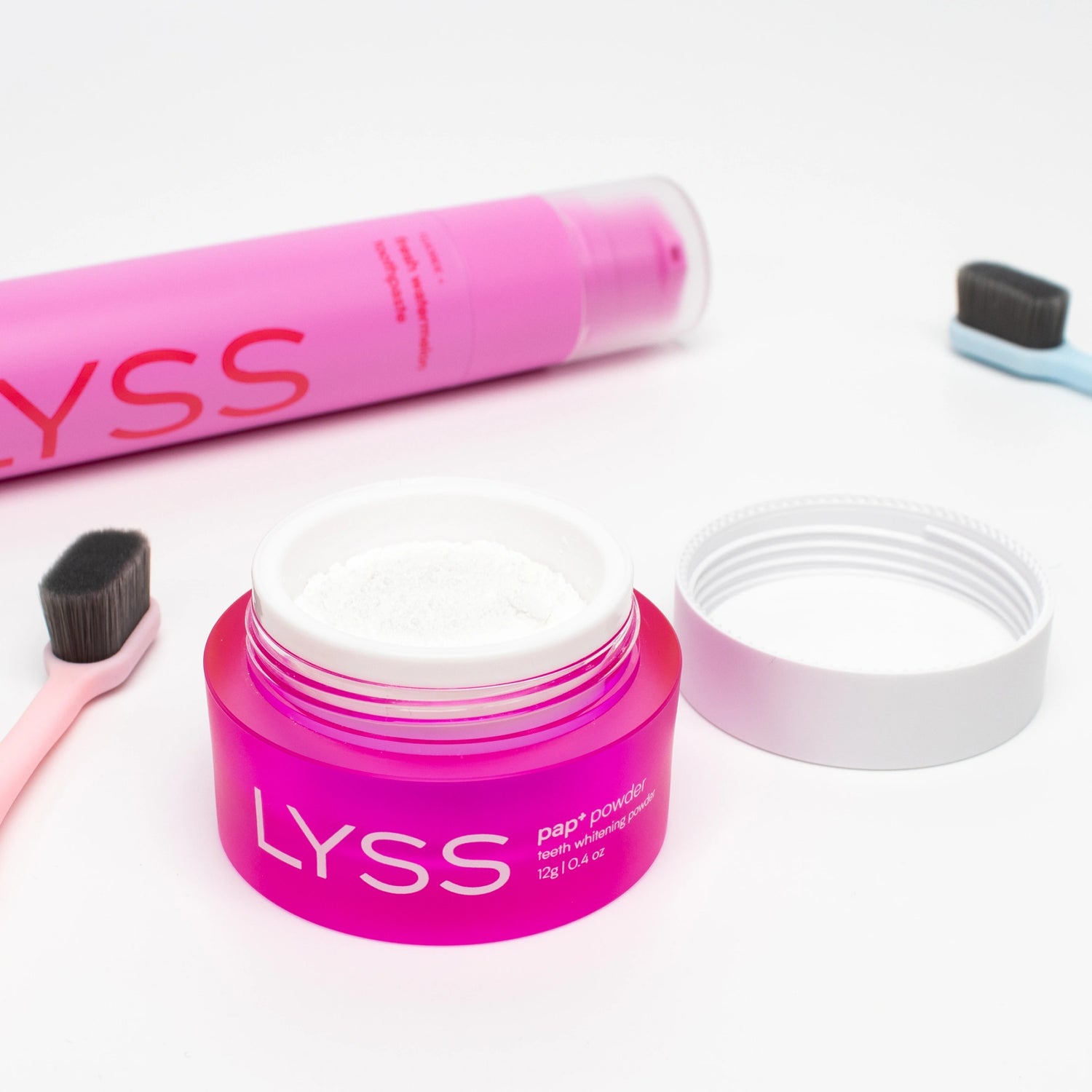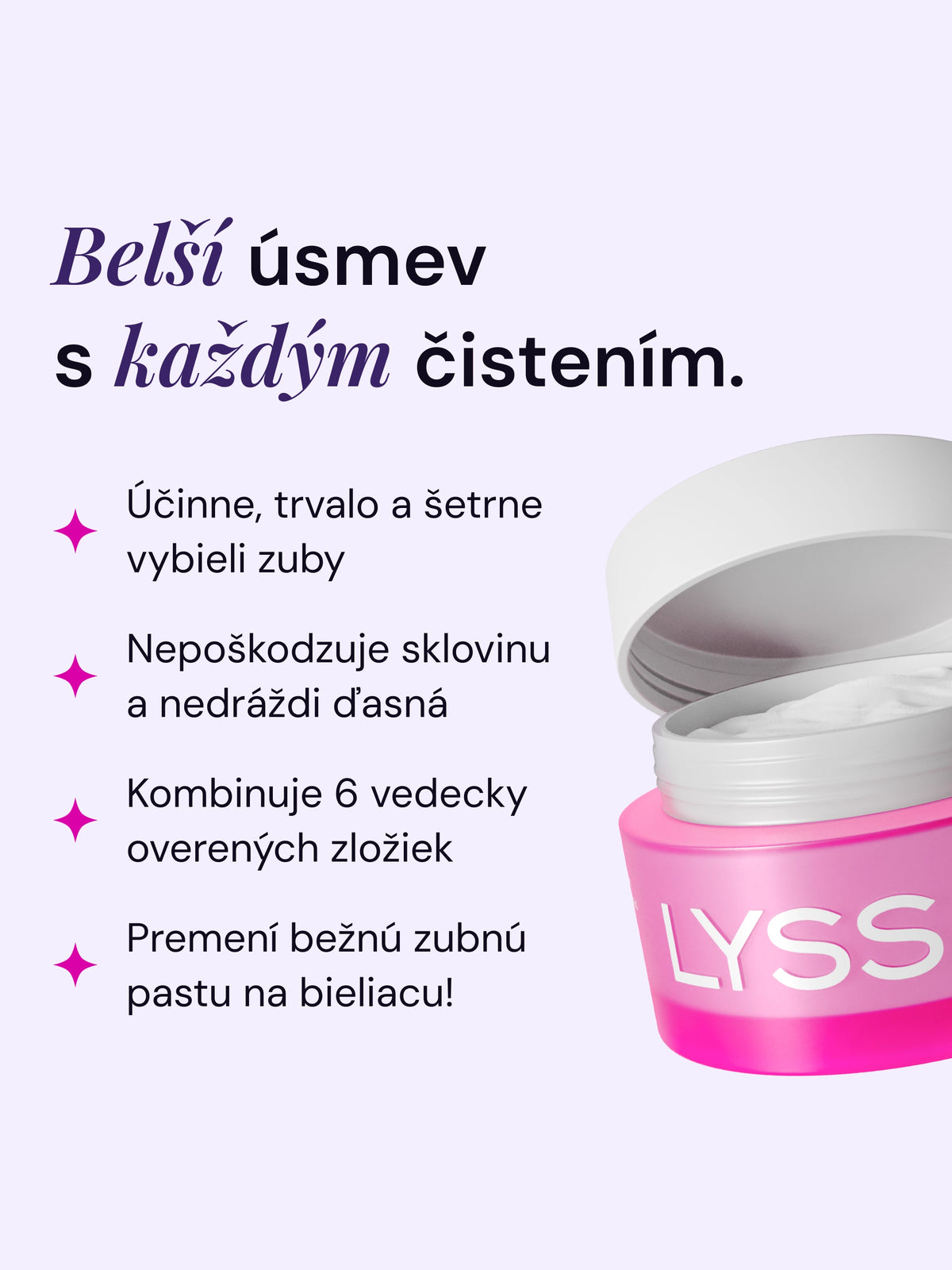 Najprv aplikuj dve pumpičky našej lahodnej zubnej pasty na zubnú kefku. Odporúčame využiť našu extra jemnú LYSS zubnú kefku.